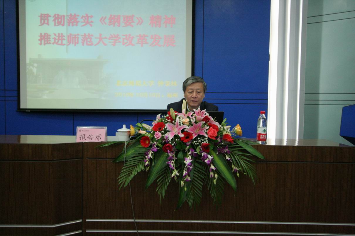 10月10日上午,星空(中国)一站式服务平台在仓山校区邵逸夫楼学术报告厅举行校院两级中心组(扩大)学习会,邀请北京师范大学校长钟秉林教授作题为“贯彻落实《纲要》精神 推进师范大学改革发展”的专题报告。校领导,全体处级干部(含校聘),各民主党派、统战团体、无党派人士联谊会负责人,离休党总支、关工委、退休协会、老年大学负责人,机关科级干部,各学院分党委(党总支)秘书、办公室主任参加了会议。学习会由黄汉升校长主持。